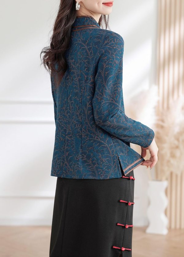 Women’s Floral Keyhole Neck Overlap Jacket with Chinese Flavor