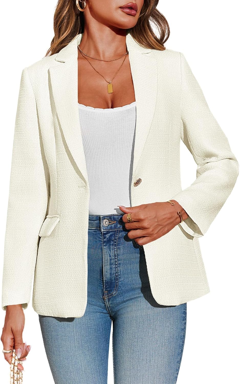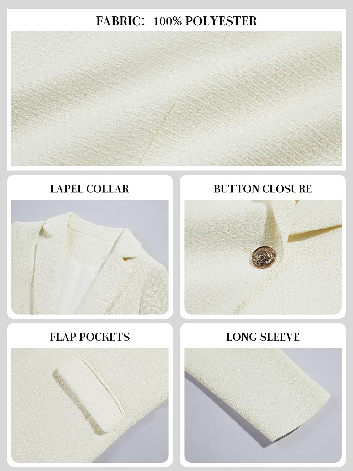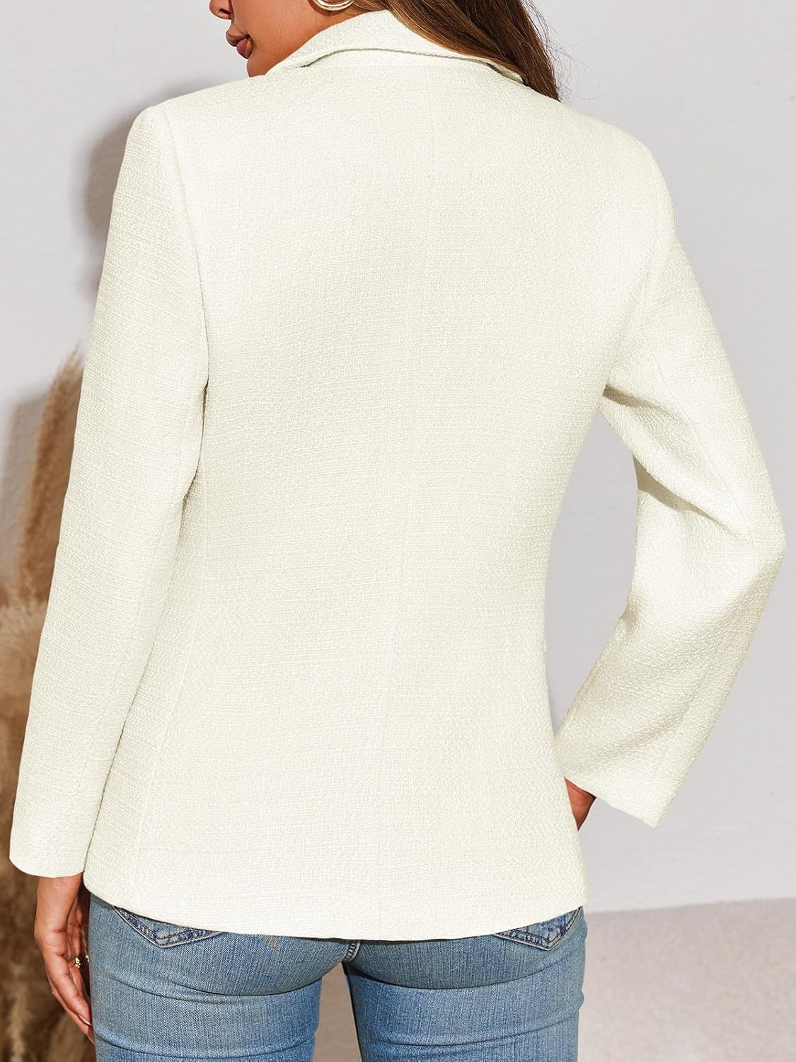 Womens Tweed Blazer Dressy Casual Long Sleeve Button Open Front Suit Jackets Business Professional Outfits